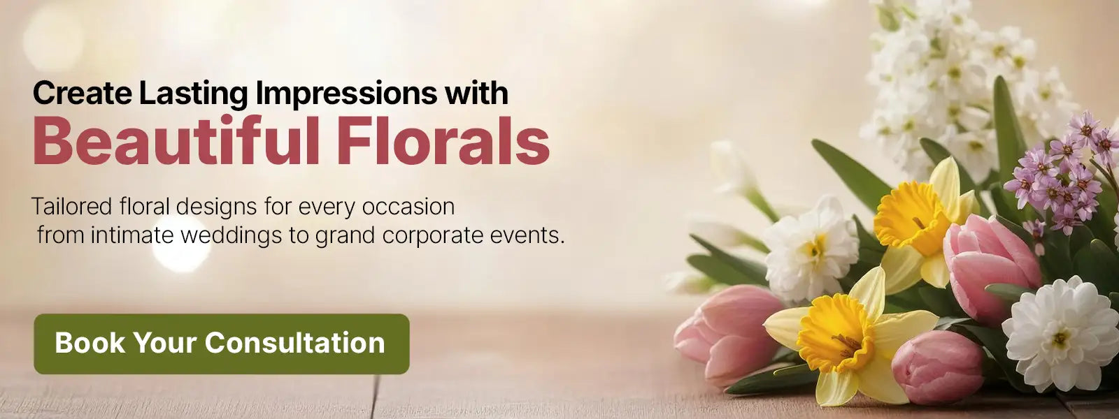 "Elevate your corporate event with Floral Events by Maria. Our expert floral styling adds the perfect touch to any professional gathering or celebration."